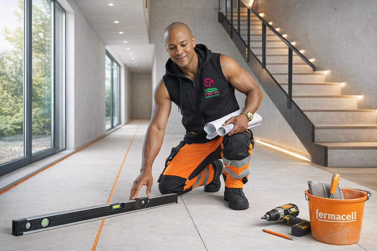 - Finitions: contrôle de planéité, prêt à recevoir le revêtement.