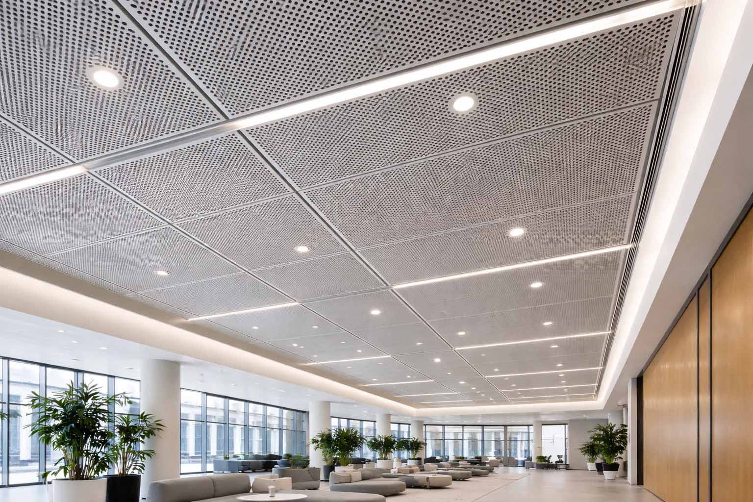 Un faux plafond améliore immédiatement le confort et l’esthétique : il corrige l’acoustique, masque et rend accessibles les réseaux (CVC, sprinklers, câbles), et permet l’intégration soignée des luminaires.